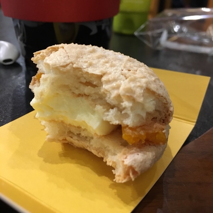 콜드브루 쿠폰 사용할 겸 왔다가 예전부터 보기만 했던 다쿠아즈를 사보았다. 특이하게 필링 부분에 감귤맛이 젤리? 느낌으로 들어가 있는데 과하지 않고 깔끔. 다쿠아즈 질감도 폭신하다. 개인적으로 다쿠아즈는 조금 더 버터쿠키같은 식감을 좋아하지만 이것도 괜찮음. 마카롱이 전반적으로 이 모양대로 씹히는 느낌이라면 얘는 쫀득..! 피넛 다쿠아즈도 있던데 그것도 식감이 이럴지는 잘 모르겠다. 가격은 2700원. 가끔 생각나면 먹을지도 모... 더보기