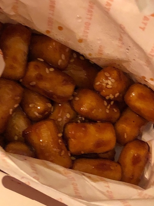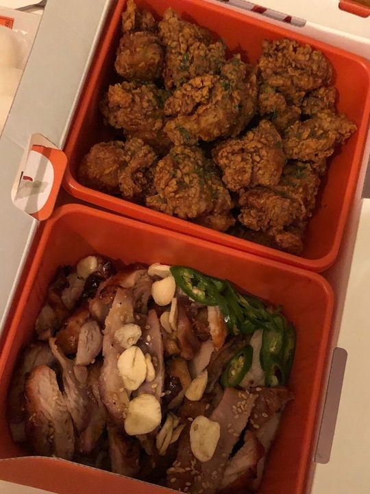 땅땅 처음 먹어봤는데 맛있었다 구운 치킨이 더 내 취향이라 담에는 단품으로 먹을듯 후기 이벤트로 떡볶이 받았는데 특이한 맛이었음 #eun_item