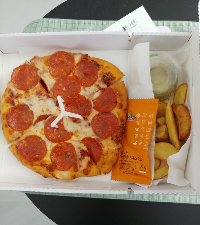 피자헛의 마이박스 1인 메뉴를 애용합니다~ 사이드로 웨지감자도 넉넉하게 들어 있어요.