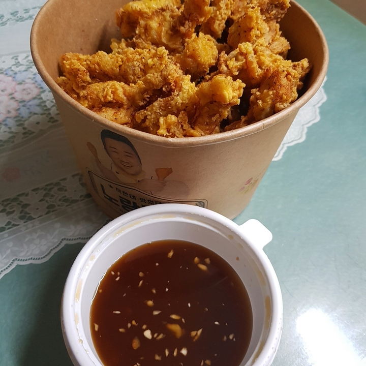 마늘소스가 되게 묽다 부먹하면 엄청 눅눅해질거같아서 찍어먹었는데 소스가 묽어서 담금질을 두세번 해야됨 #eun_item