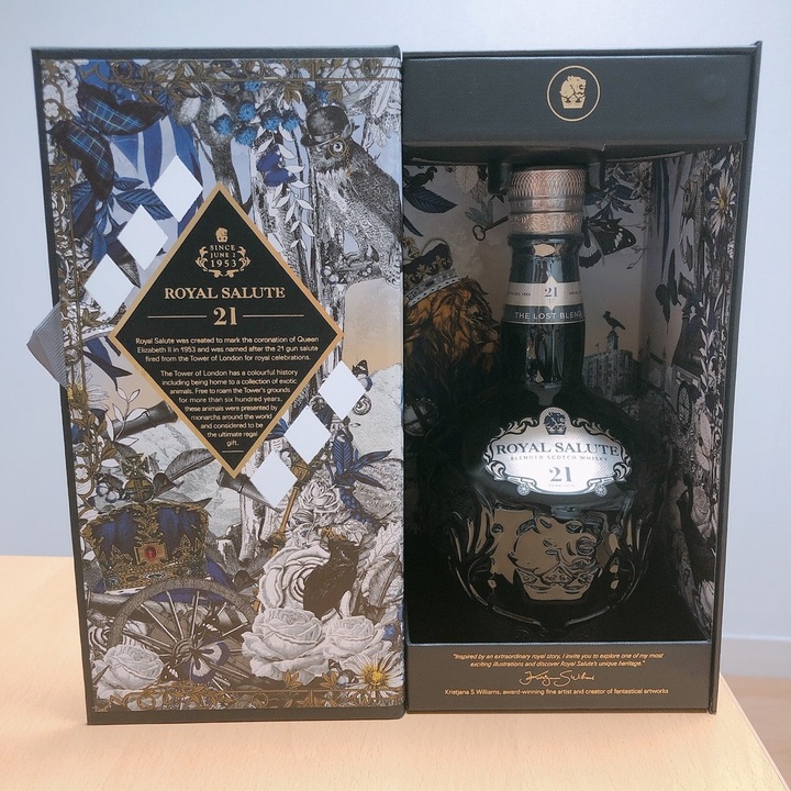 -로얄 살루트 면세점 전용 판매 제품인 로스트 블렌드 마셔봤습니다. 기존의 로얄 살루트 21년산보다 덜 스모키한 느낌이지만 좀 더 묵직한 맛은 있으며 동시에 배향 같은 프루티한 산미가 있습니다. 병은 검은색이구요. 굳이 따지자면 전 로얄 살루트 21년산 오리지널을 마실 것 같네요.