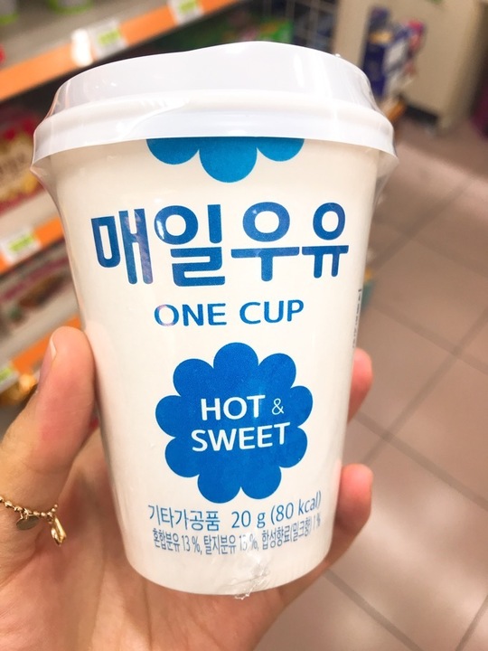 [매일우유 원컵] 요즘 sns에서 핫한 원컵. 품귀현상으로 세븐일레븐에 가면 판매원이 창고 들어가서 귀한 물건 꺼내듯 꺼내준 원컵. 나도 겨우 하나 살 수 있었다. 자판기 우유맛이라 소문이 났지만 그 보다 좀 덜 달았다. 자판기 우유 요즘 찾ㄱㅣ 힘들던데. 가끔 생각나면 요고로 마시면 될듯!
