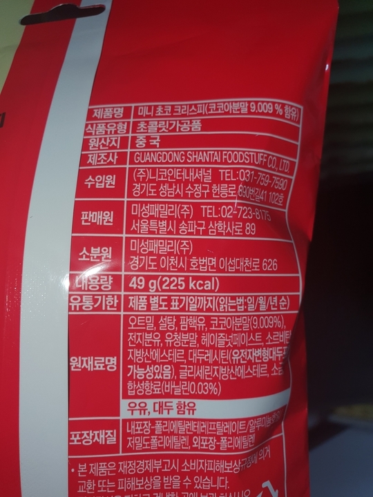 긍정: 개별포장됨. 편의점 원플원행사 자주함. 오트밀과 초코의 조합으로 달고 바삭하다. 부정: 개별포장이지만 다소 과대포장이기도함. 칼로리에비해 포만감이 많이부족. 어릴때먹던 초코 후레이키가 떠오르는 맛이며 닛신 크리스피초코와도 매우 흡사한데, 그 제품보다는 양과 가격면에서 가볍게 즐길수있겠다.