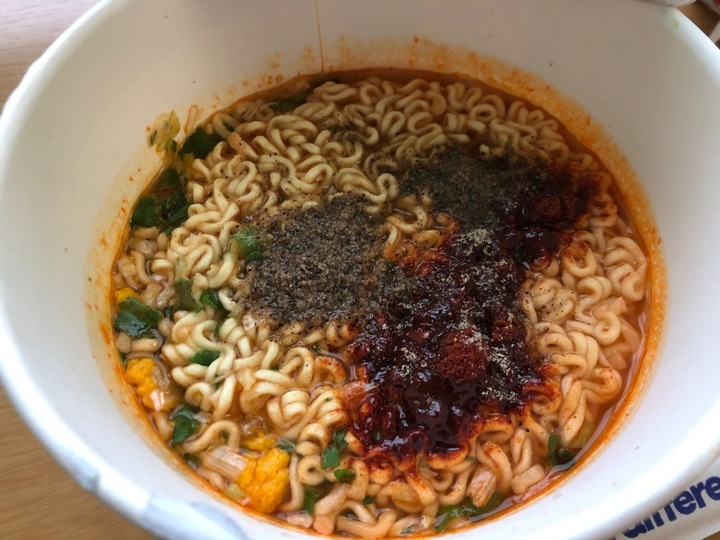 -오뚜기 진라면에 후추를 넣은 맛입니다. 상상 가능한 그런 맛이라는 뜻! 현재 이마트 24에서만 팔고 있어요.