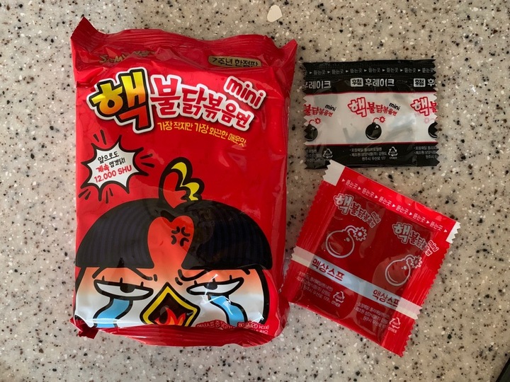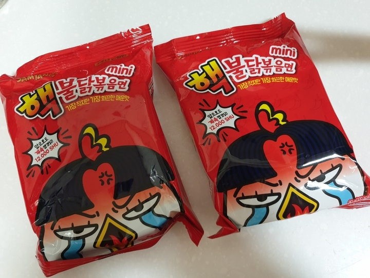핵불닭 미니 한정판 이라고 한 것들은 정말로 한정판인가? 이제 사질 않으니 출시되는지 모르겠다. 불닭은 딱히 매운지 모르겠고 핵불닭이 딱 맛있게 충족시키는 정도. 밤이니까 반만 먹어야지~ 오예 땡큐하고 미니를 구매해왔는데 웬걸 내가 먹던 핵불닭이 아니었ㄸ ㅏ 이거슨 고통을 동반했다. 수많은 유튭 먹방 크리에이터(?)들은 핵불닭이 아니라 이 미니를 진정 먹어봐야 한다.