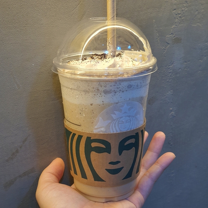 저녁에 문득 커피가 마시고 싶어져서!! 디카페인으로 주문했습니다. 샷이 두 개가 들어가다 보니 커피의 씁쓸함이 느껴지긴 하지만 크게 신경쓰이는 느낌은 아니에요. 민초 블렌디드 후기를 구경하면서 얼음 적게 옵션을 추천하시는 뽈레러가 계시기에 차이점이 무언지 궁금해서 적용해봤어요. 음료 받을 때 파트너님이 얼음 적게 옵션을 선택하셔서 음료가 묽을 수도 있다고 안내해주시더라구요~ 에스프레소 크림은 여전히 맛있구요.. 여기에 자바칩... 더보기