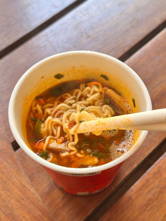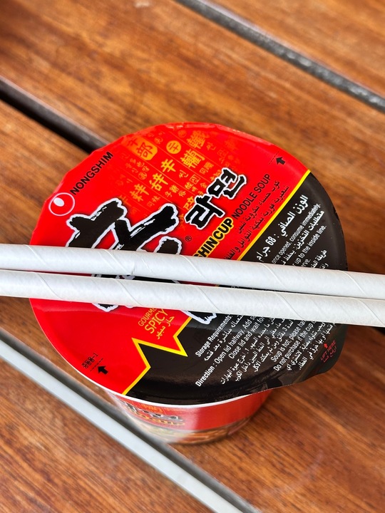 #아기랑여행 두바이 16/20 까르푸에서 혹시 몰라서 산 신라면 컵이 저랑 짝꿍을 살렸습니다… 짝꿍은 여기 오자마자 몸살 나서 하나 먹고, 저는 다음날 조짐이 안좋아서 먹었는데 덕분에 컨디션이 상당히 회복되었습니다. 수출용 신라면은 건더기가 정말 큼직큼직하네요! 그리고 다음에는 여행용 젓가락도 챙겨야 겠다고 다짐했습니다 (종이 빨대로 먹음 ㅠㅠ