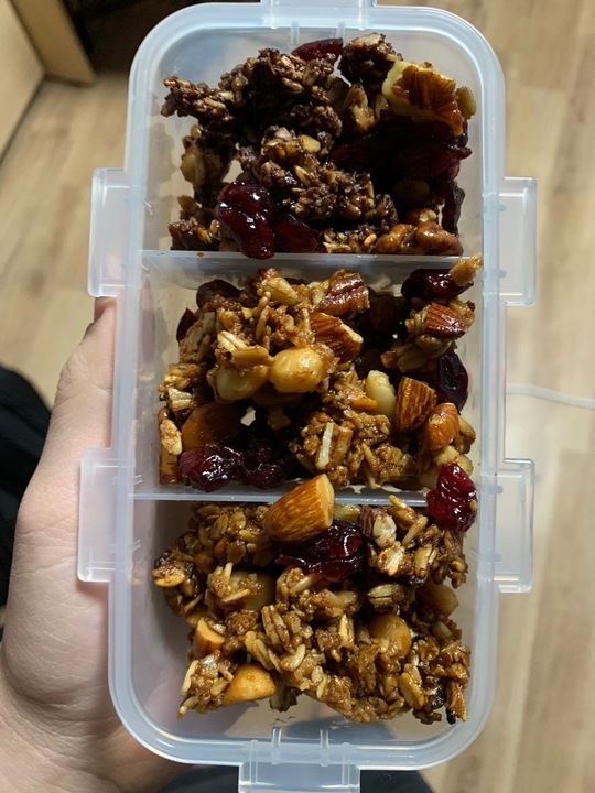 아는 동생이 만들어준 그레놀라. 진짜 제발 팔아줬으면 좋겠다 너무너무너무너뭐누머 내 스타일이었다 하… 장사할 생각 없니 ? 내가 사료 마냥 먹을 자신 있는데 ㅠ 100000000000000% 추천하는데 구해 먹을 수 없어서 슬프네요.. 헝