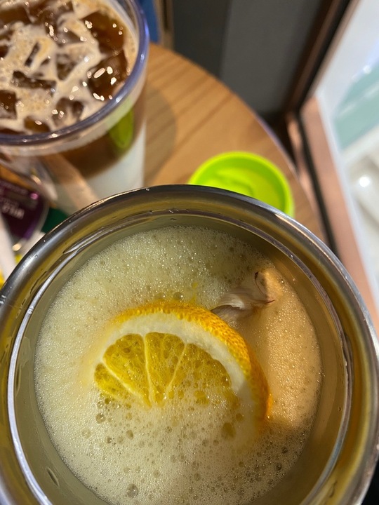 저도 먹었습니다 nct ㅋㅋㅋㅋㅋㅋㅋㅋ 달달하고 뜨끈한 레몬오렌지쥬스 사이 어딘가.. 아주 추운날 또 땡길거 같아요 ㅎㅎ
