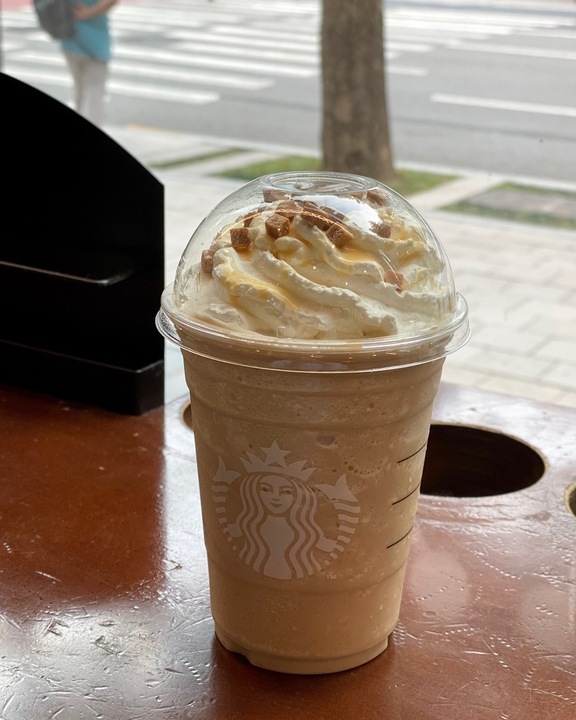 더위에 지쳐서 단 것을 찾다 주문했는데 커피맛이 강렬하진 않았고, 카라멜칩 추가 할 수 있음 더 사먹을텐데 싶었다. 역시 스벅은 카라멜이 최고🐻🧊 #스타벅스 #프라푸치노