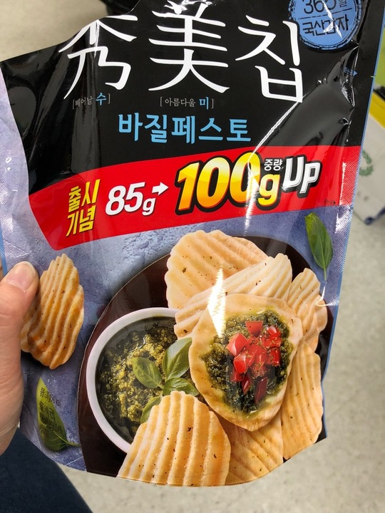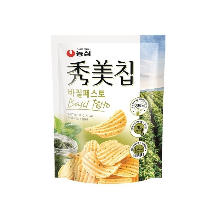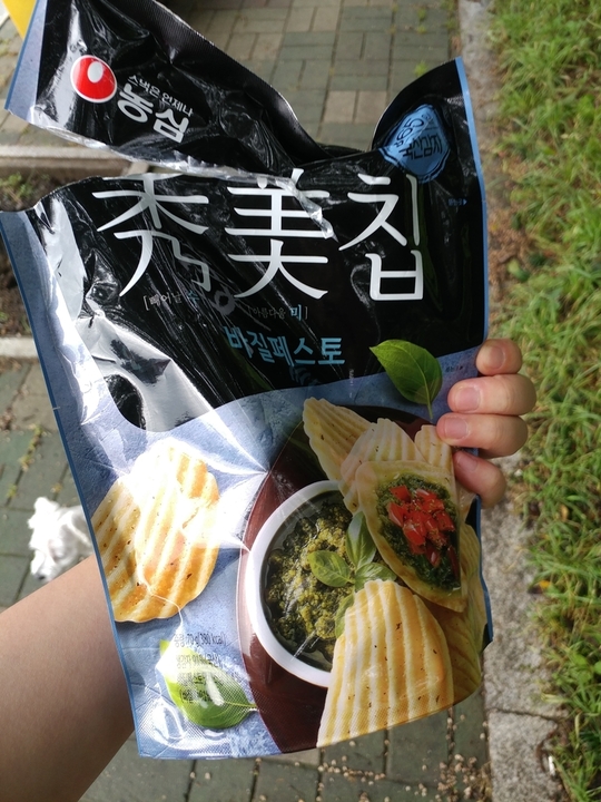 제일 좋아하는 과자 중 하나 가족 중 한명이 농심에 다녔어서 우연한 계기로 먹게 되었는데 입원했을 때 청우 찰떡 쿠키랑 이게 그렇게 먹고싶더라ㅜ 옛날엔 퍼런 패키지 지금은 하얗고..연두..초록 패키지 원래 바질페스토를 좋아하고 이 과자도 정말정말 좋아한다 근데 파는 곳을 많이 보진 못했음... 대중적인 맛은 아닌 느낌이라 단종될까봐 걱정되니 제발 같이 사먹어요 제발~~!~! 바질페스토 좋아하시는 분들 츄라이츄라이