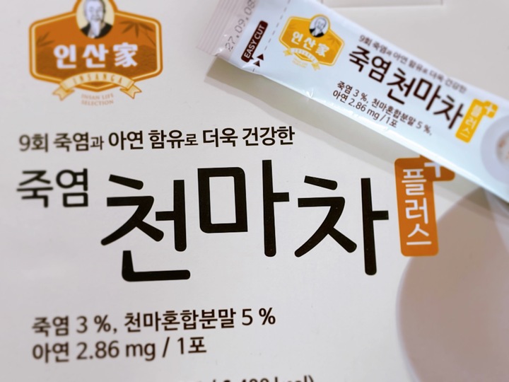 인산농장의 그 인산가입니다 천마차에 죽염? 싶지만 꼬숩한 천마차에 소금의 짠맛 살짝이 킥입니다 온갖제품에 죽염 넣더니 단짠은 기가막히게 맞추는 브랜드