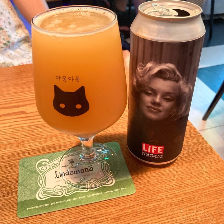 서래마을에 샵이 있는 크래프트 브로스의 라이프 ipa. 첫 번째 마릴린 먼로는 기대보다 그냥 그랬는데 이번에 나온 레시피가 다른 체게바라 라벨은 완전 내 취향! 올해 마신 뉴잉 중 가장 맘에 든다. (2020.08)