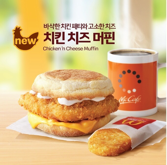 말 그대로 치킨 치즈 머핀. 야채는 없다. 다른 맥모닝보다 좀 더 짠 편이고 좀 덜 건강하고 좀 더 헤비한 느낌. 맥모닝 먹으면 괜히 부지런한 거 같고 여유있는 거 같고 좋다😉