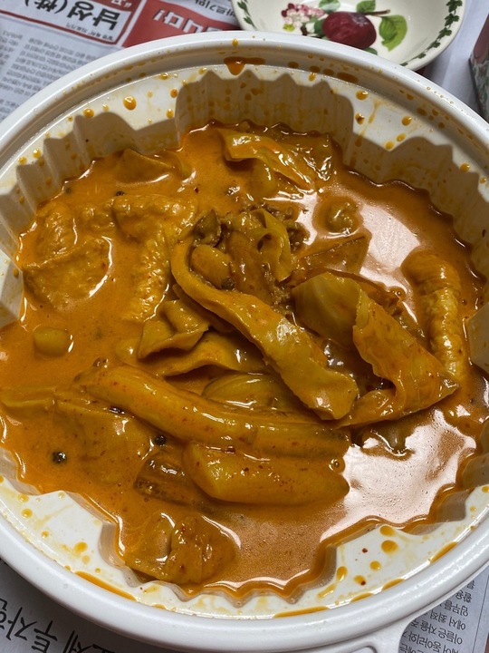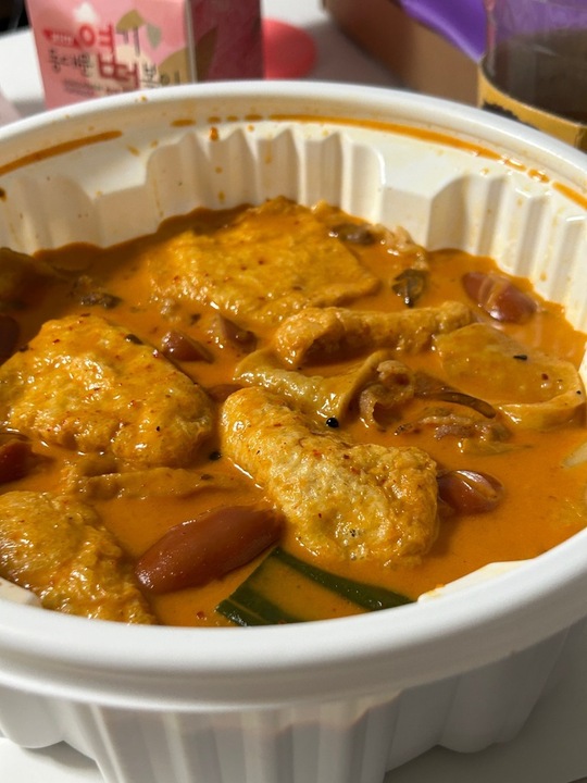마라로제 떠올리면 상상되는 그 맛. 엽떡의 맛은 거의 안났지 싶고 두 번은 안 시켜먹을 듯. 마라맛은 꽤 제대로 났음. 꿔바로우도 후기들 좋길래 시켜봤는데 내 걱정대로 그냥 냉동식품 맛 그 자체라 실망했음. 소스는 셔서 내스타일 근데 너무 신.. 근데 왜 마라엽떡은 또 궁금한거야😭