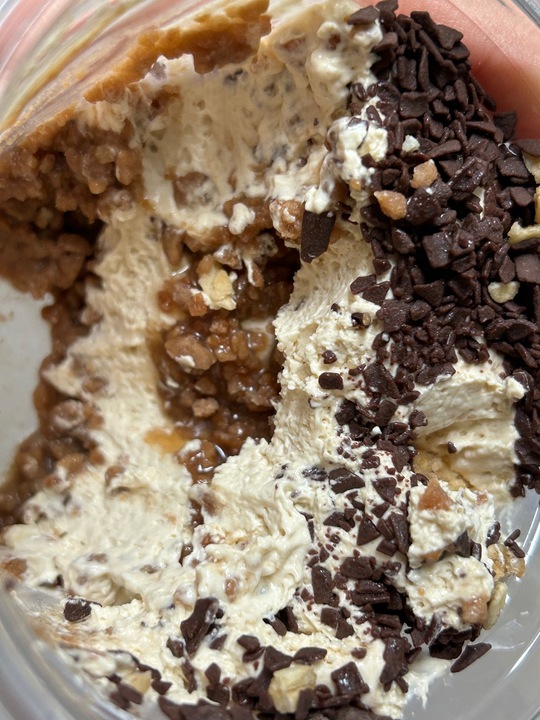 뒤늦게 먹어보게되었는데 기대한 탓인지 모르겠지만 처음한입은 맛있었으나 크림비율이 너무 많아서 달고 느끼하게 느껴졌음 쿠키부분이 맨밑에층만 깔려있고 나머지 크림이랑 토핑들이었어서 아쉬웠음 쿠키부분 크림부분하고 한번 더 쿠키부분하고 크림하면 비율이 맞지 않았을까싶다