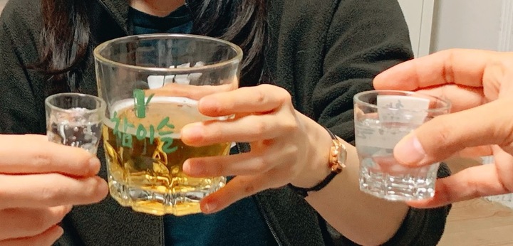 박카스처럼 돠라락 까서 병째 마시는 크기 별별 소주잔을 다 모으는 짝꿍😩😩