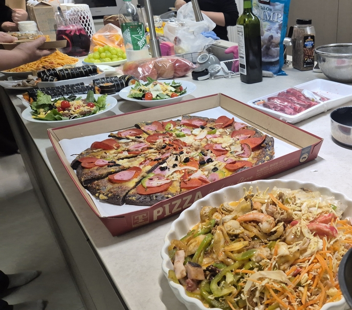 올해 크리스마스는 파티룸을 빌려 요리해먹었어요 타코야키 팬을 사서 첫 개시한 요리는 치즈퐁듀새우! 확실이 맛없없조합이라 엄청맛있습니다🥰 다만 느끼하긴 느끼해요.. 다음에는 할라피뇨를 넣어볼까 생각을..! 스테이크는 롯데마트에서 저렴한 와규 샀는데도 맛있었어요 모두들 메리크리스마스🎄🌲