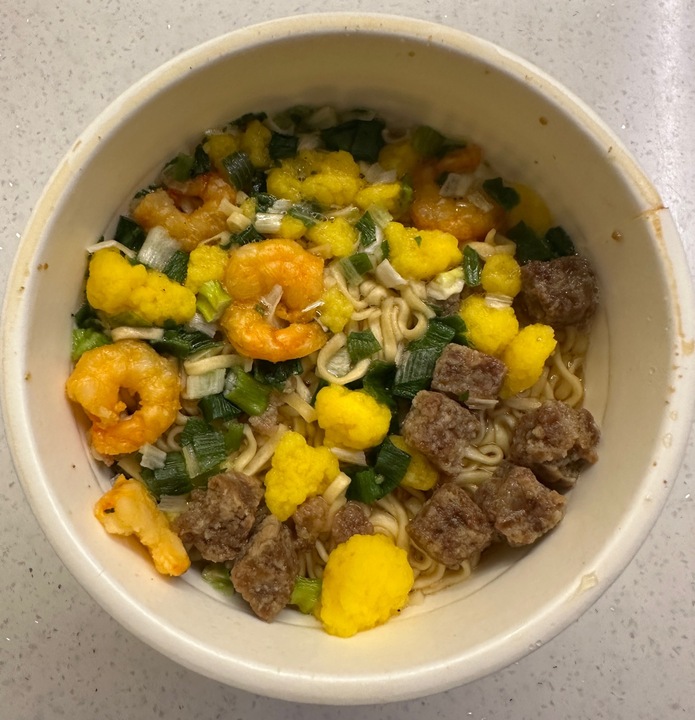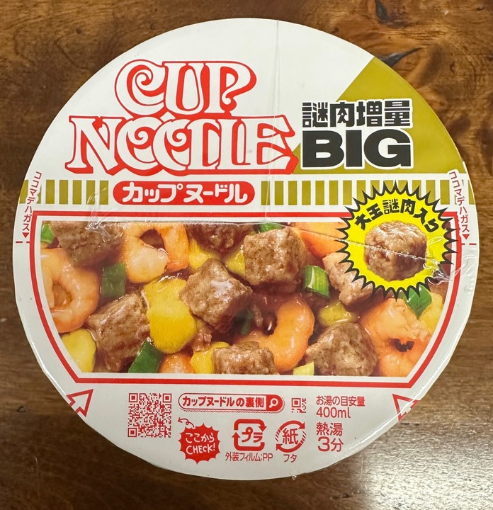 #닛신 #컵누들 #BIG니조니쿠증량 #日清 #カップヌードル #BIG 謎肉増量 "컵누들의 가짜고기 좋아하시는 분들이라면 필수템" 컵누들 빅쓰리즈 중 <미스러리고기>라고 부르는 고기고명의 사이즈가 커지고 많아진 독특한 컵누들. 면도 약 30g 증량으로 오오모리 기능을 충분히 하면서 콩고기인 니조니쿠의 크기도 극대화해서 뭔가 잘 먹은 느낌이 드는 컵누들이다. 이런 제품이 나오는 이유는 바로 니조니쿠들 메니아들 때문인데 (본인도 ... 더보기