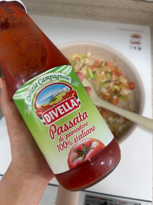 올해 초 부터 지금까지 다섯번은 구매한 것 같은 토마토퓨레 거의 토마토 그 자체라고 봐도 될정도로 토마토함량이 높은 퓨레로 마녀스프,토마토스튜,라자냐 등 어디에 써도 좋음 개봉후 3일 이내에 써야하지만 성분이 깔끔해서 마녀스프 만들때 특히 잘 사용하고 있다. 이거 쓰고 안쓰고랑 맛이 다름 맛은 아주 진한 토마토맛이고 걸쭉한 편