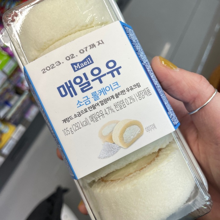 소금맛은 잘 모르겠지만 빵도 푸석하지 않고 우유~바닐라~스러운 향이 진해요! 커피나 음료 필수.. 전문점같이 완전 부드러운 크림은 아니지만 편의점 롤케이크 중에 제일 맛있는 것 같아요! 겨울에 딸기 얹어서 많이 먹었어요🍓