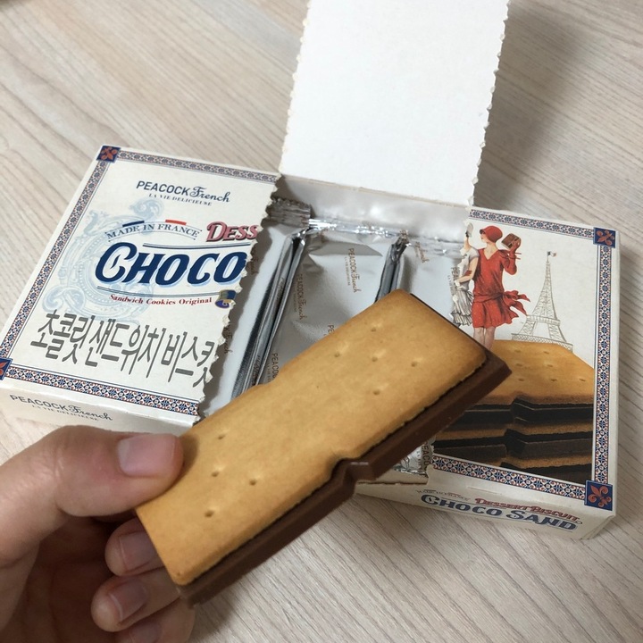 과자답다! 이 정도는 되어야🐽 초콜릿은 두께가 만족스럽고, 비스킷 맛도 괜찮아요. 빈츠 좋아하시는 분들께 추천합니다.