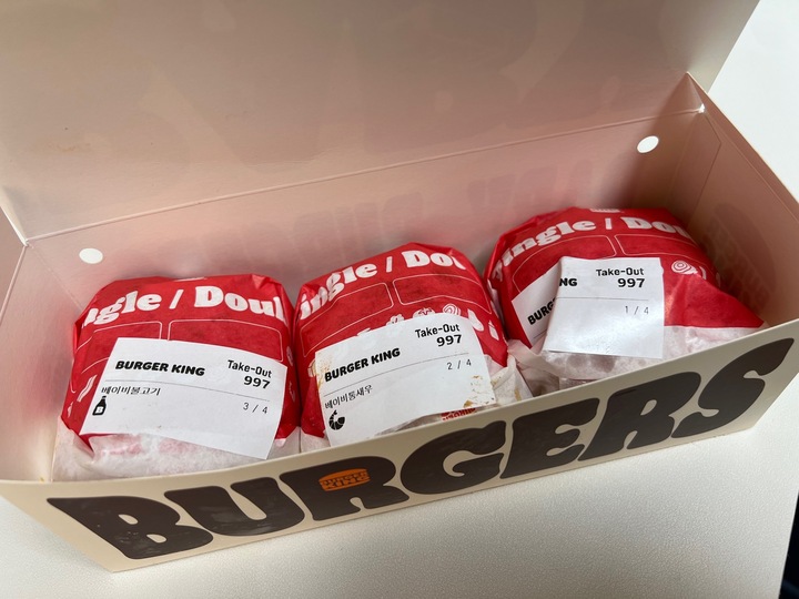와퍼 세트 가격에 버거 세개를 주길래 먹은 버거들 크기가 작고 옹골찬게 나쁘지 않았어요 마치 이쁜이버거 빵이 일반 버거랑 다르게 브리오슈? 여서 맛있는데 그나마 새우 와주가 젤 맛있다는 점