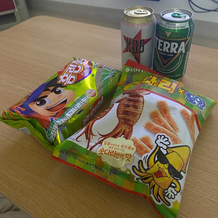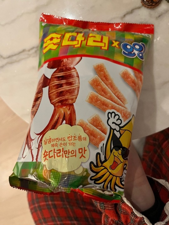 포켓몬빵 사러 돌아댕기다가 신기한 과자만 자꾸 집어오네요 휴ㅋㅋ 아무튼 숏다리와 콜라보한 오잉이라 함 묵어봤는데 이건 확실하게 맥주 안주입니다 짭짤하니 좋네요. 오잉보단 뭔가 더 구수한 느낌 같은데 기존 오잉을 먹어본 게 꽤 오래전이라 확실하진 않습니다😇