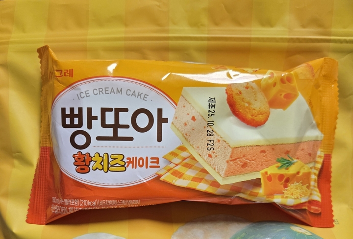 해태 '빵또아 황치즈케이크' "뽀또맛 샌드 아이스크림" 식후에 먹는 빵또아라니. 아이스크림을 냉동실 꽉채워주신 가족들에게 감사 먼저 올린다. 생각보다 꼬릿달달 황치즈향 많이 나서 아이스크림 가게 갔을 때 손 갈 것 같다.