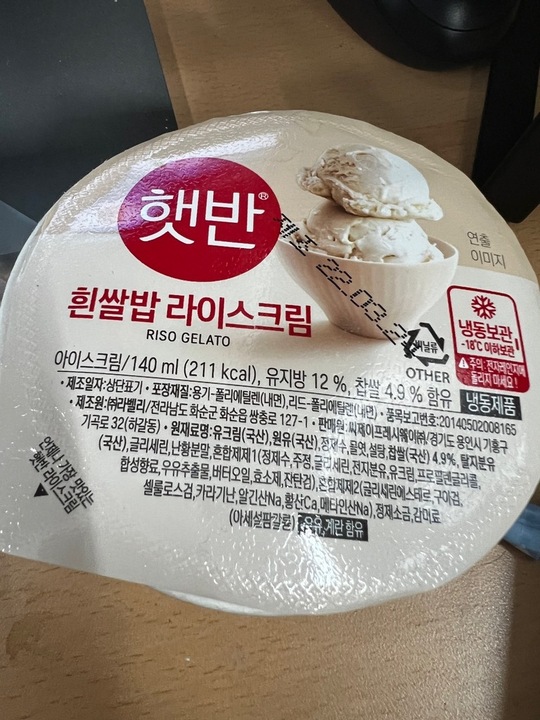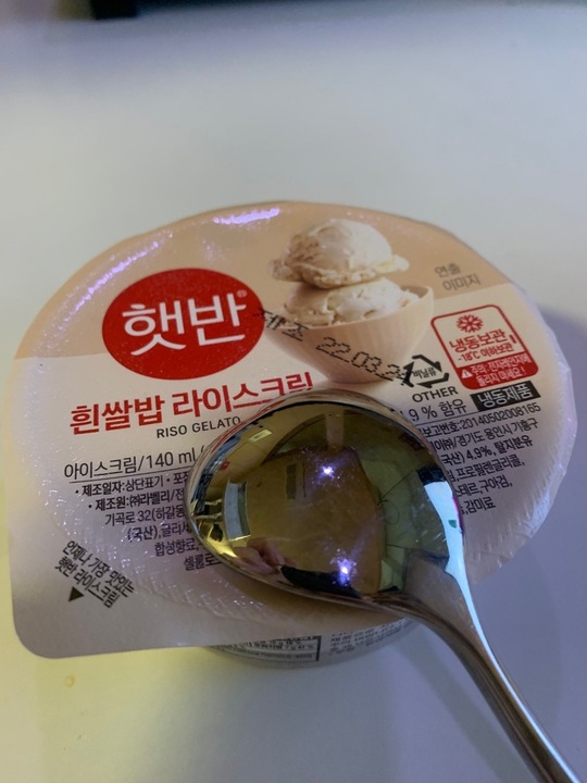 물엿 섞은 바닐라 아이스크림 맛에 밥알 박아놓은 식감 먼가 이 밥알과 아이스크림이 따로노는 느낌입니다 쌀알이 약간 굴러다니는 느낌. 아이스크림은 보통의 젤라또처럼 쫀쫀하지않고 공기 그득한 포근포근 구름질감이에요 하지만 쌀 아이스크림이 지금도 흔하진 않으니 이렇게 다가가는 것도.. 라벨리가 제조원이군요