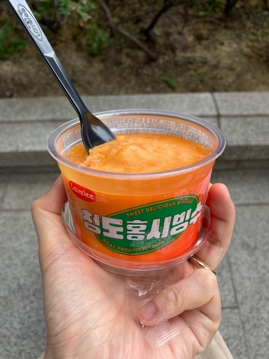 포장을 보고 홍시셔벳 같은 건가 했는데 홍시 맛은 전혀 안남. 홍시빙수라고 안써있었으면 그냥저냥 먹었을텐데..오히려 맨밑에 깔린 연유와 떡 부분이 제일 나았다. 씨유 가격 3500원..
