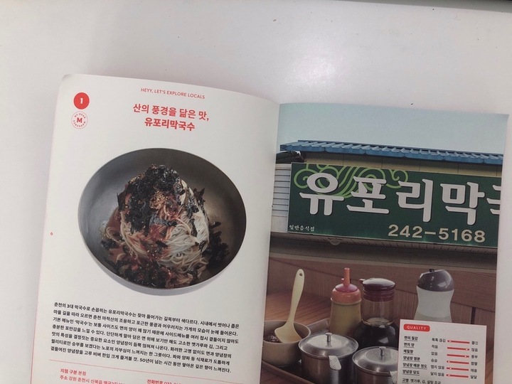 헤이춘천 숙소에 묵었다가 받은 소책자 춘천막국수집 안내서 제법 자세해서 재미있었다 issue 002 라는걸 보면 계속 되는 책자 인듯