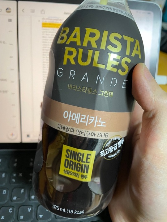 아카페라 스페셜티(에티오피아 예가체프)도 좋지만 편의점 커피는 역시 매일의 바리스타룰스가 가장 마음에 든다는 누군가의 평을 뽈레에서 스치듯 본 것 같아 구입. 내 취향은 상술한 아카페라지만 이것도 맛있다고 생각한다. 이제 콘트라베이스랑 조지아 크래프트는 못 마시겠네…