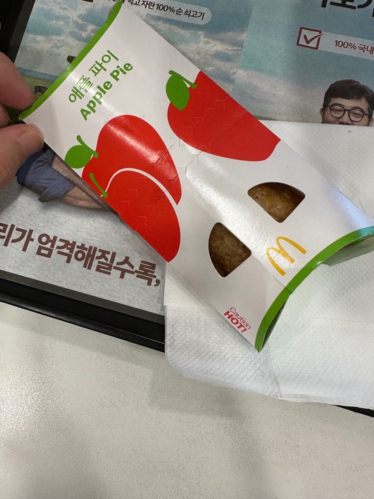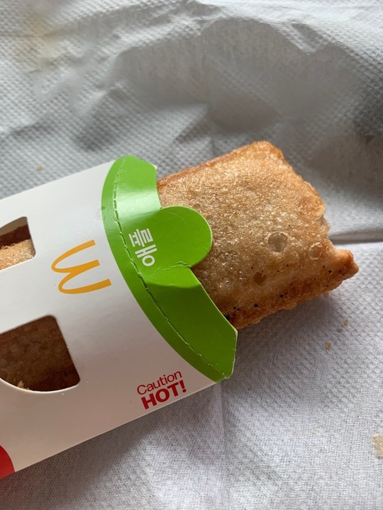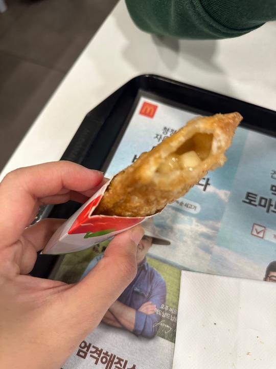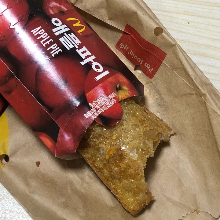 맥올데이로 슈슈버거(맥날최애매뉴에요😻)세트가 하루종일 4900원이라는 광고보고 맥날로 달려갔습니다👍 간 김에 1000원인 애플파이를 후식으로 사왔는데, 밀가루맛 너무 심하고 파이지가 너무 두껍네요🤦🏻♀️ 예전엔 더 맛있었던 것 같은데... 이젠 후식은 다른데서 먹고 슈슈버거만 먹을거에요🙆🏻