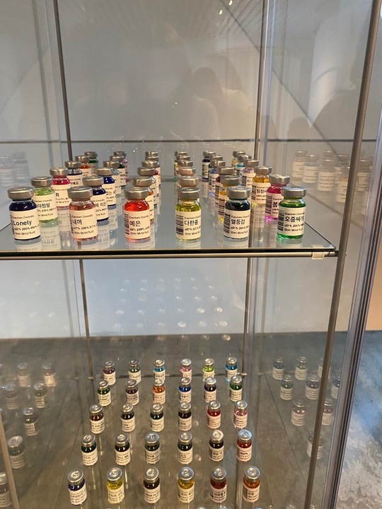 NEW RANDOM DIVERSITY 순간의 사람의 뇌파를 읽어 색 또는 향을 만들어볼 수 있는 아주 아이디어 좋은 전시 전시라기엔 부족하고 체험에 가깝다 사진을 준비해 가면 VR로 띄워주고 그걸 통해 뇌파를 읽어서 색/향을 만들어주고 병에 담아준다 색의 경우 RGB의 혼합으로 향의 경우 처음 - 중간 - 잔향이 각각 세개씩 있어 이들을 맡을 때의 뇌파를 조합하여 조합표를 만들면 그걸 통해 자신이 직접 향수(사람몸에바... 더보기
