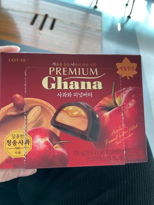 세븐일레븐에서 새로운 거 발견해서 구매. 분명 사과와 피넛바터인데 사과맛은 어디에 있는거지…? 피넛버터맛도 그닥…? 피넛버터때문인지 약간 카라멜같이 안이 쫀득한 식감인데 약간 이에 낀다;;; 제철한정이라 다행이다(?)
