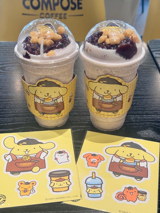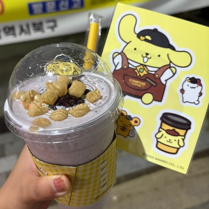 컴포즈 팥절미밀크쉐이크 맛있고 꽤괜찮음 지금 컴포즈 산리오랑 콜라보해서 팥절미밀쉐(5천원) 구매시 스티커도 줍니당