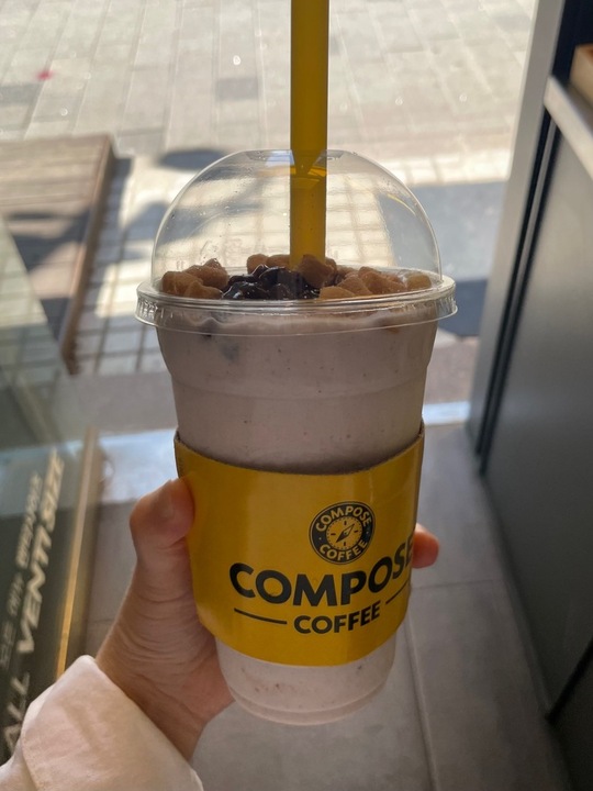 내 기준 빙수보다 먹기 편해서 이 메뉴가 여름 베스트! 컴포즈는 어플에 나와있는 가격이 포장가격이라 매장에서 먹으면 1,000원 추가된다는걸 몰랐음.. 앞으론 텀블러 가져가서 어플로 주문하고 매장에서 먹는걸로!
