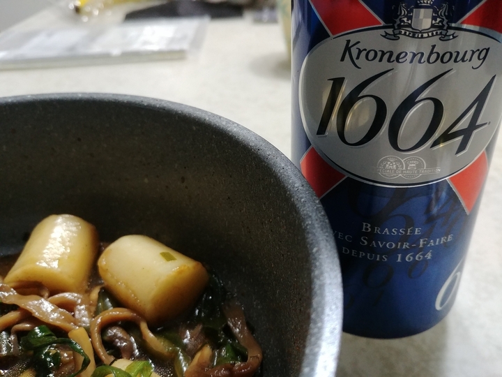 봉브레드 마늘크림에 빠진 빵 한쪽 먹고 체해서 맥주(+냉장고털이 궁중떡볶이)로 해장하는 중. 가향에 색깔도 탁한 1664(은색캔)는 전혀 취향 아닌데 얘는 맛이나 무게나 다 맘에 든다.