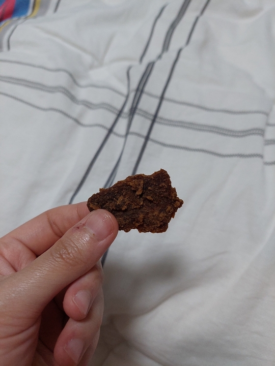 진짜 진짜로 편의점 육포 그 맛입니다! 물론 고급 쇠고기 육포 말고 <편의점 육포>요! 먹으면서 내내 신기했어요. 아래 포스팅의 밍끼 님 말대로 모르고 먹으면 구분 못 할 것 같아요🤔😉