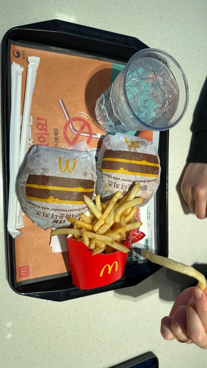 맥날 더블 쿼터파운더 치즈 버거 🍔 고기맛이 강하다. 그럴 수 밖에. 고기 비중이 엄청 크다. 그리고 치즈맛이 좋았다. 치즈의 여운이 오래 갔다... 갑자기 치즈 치즈 노래를 부르면서 치즈 팝콘을 찾게 됐지...