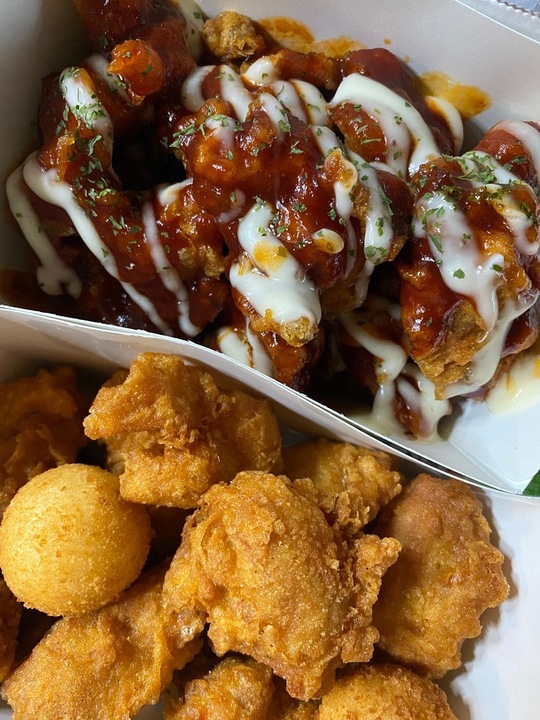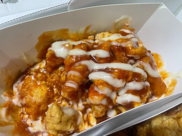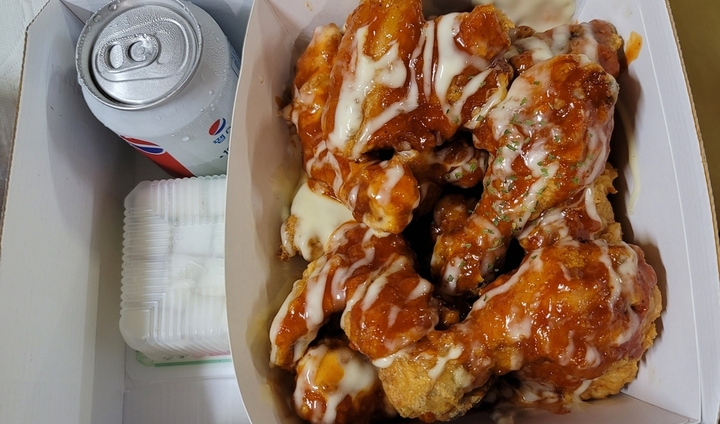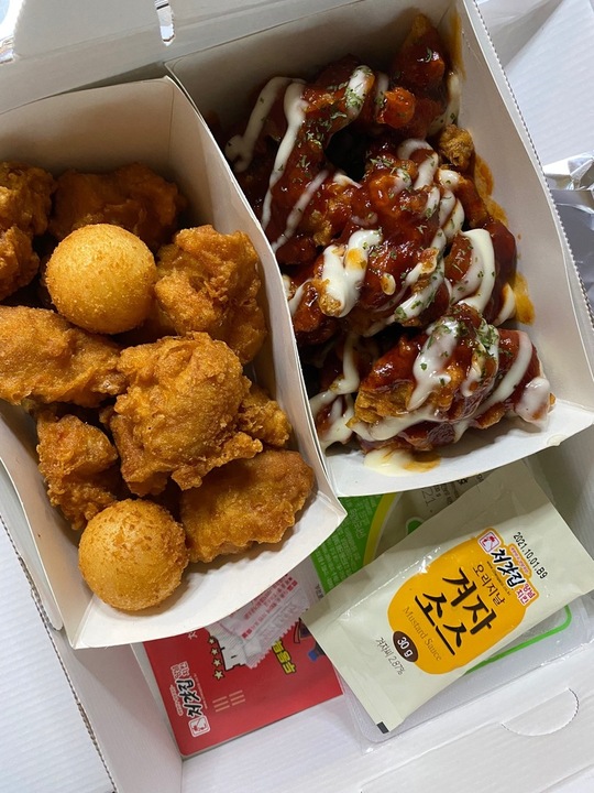 긍정: 그렇게 맵지않으며 감칠맛있게 단맛, 개인적인 브랜드이미지와는 다르게(?) 생각보다는 개성있다. 부정: 안맵고 달다는 장점이 단점도 될듯. 통상의 양념치킨처럼 양념을 완전히 비빈게 아니라 약간 부먹스타일로 끼얹어있는게 특징인듯하며, 그래서그런가 바삭함이 어느정도 유지된다. 생각보다는 먹어볼만하다고 생각한다. 내가아는 양념치킨중에는 가장 안맵다.