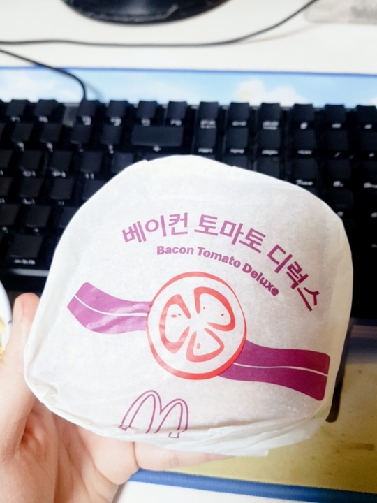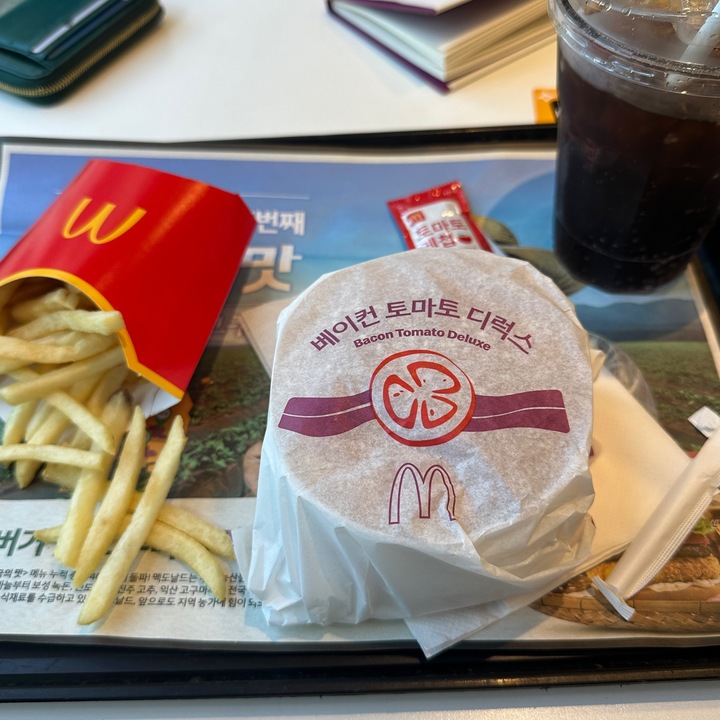 소스가 살짝 매콤하더라구요! 맥날 방문할 때마다 느끼는 거지만 사이즈. 넘작아욧. 역시 버거엔 토마토가 들어가야 맛있는 것 같습니다.