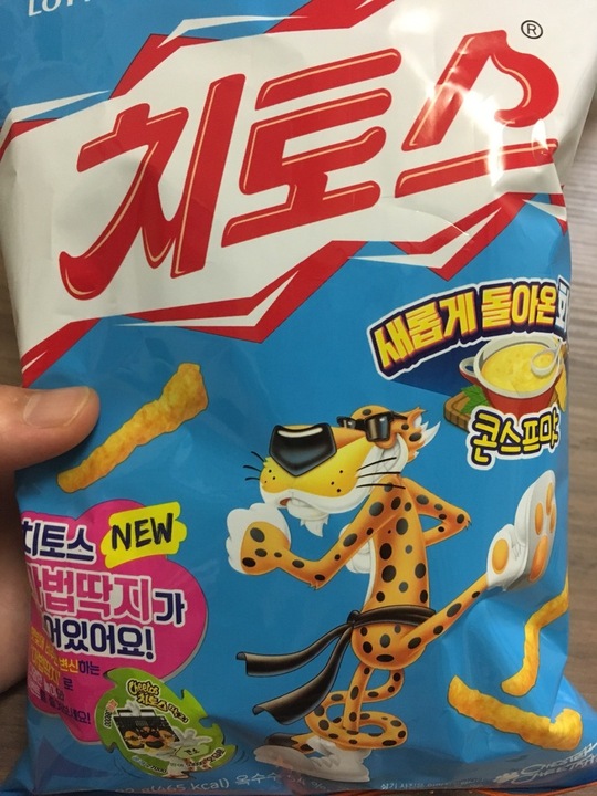 시대를 풍미했던 화이트 치토스를 아시나요? 어릴때 저의 최애 과자중 하나였는데 발암물질이 나왔던가 뭔가 나쁜일로 단종 되었던더 같아요. 그리고 새롭게 재출시된 이아이. 안을 보니 하얗지 않구 노란색 이네요. 정직한 콘스프맛. 맛나유. 근데 전 화이트 치토스가 더 맛있었는뎨.. 아쉽네유. 개인적으로 제 맘속의 콘스프 1위는 여전히 꼬북칩입니다.