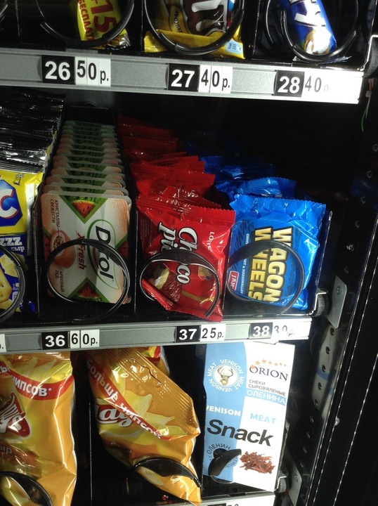 러시아에 가면 자판기에 초코파이가 두 종류 있습니다. 하나는 40루블, 다른 하나는 25루블입니다. 둘 다 한국제품이구요. 40루블은 오리지널 오리온 것, 25루블은 롯데 것. 한국에선 이 정도 차이 나진 않는 것 같은데 말입니다.(4년전 상황이니 지금은 잘 모르겠습니다.)