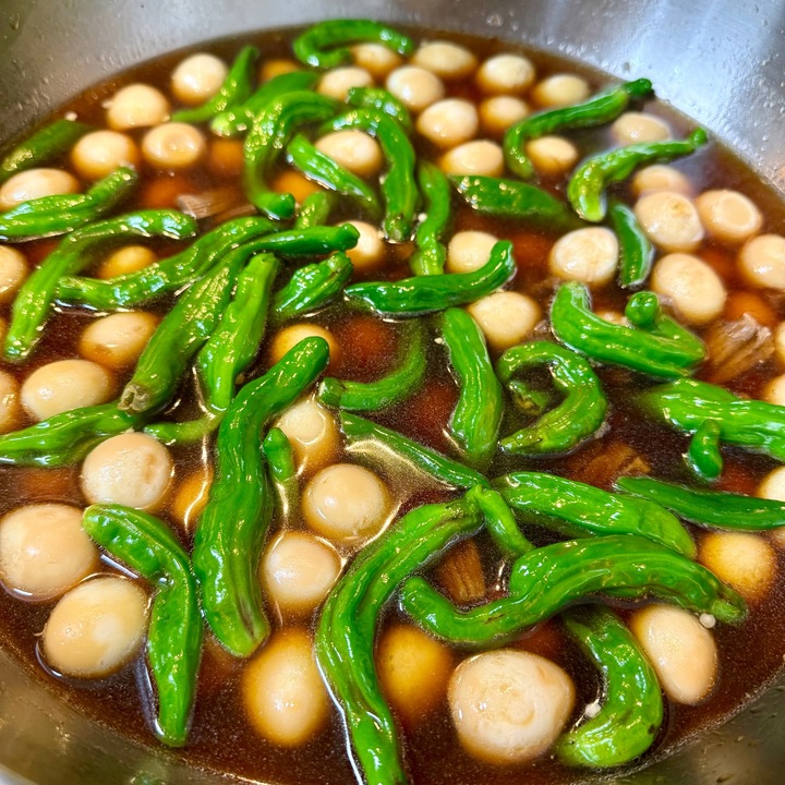 메추리알 꽈리고추 장조림. 기왕 만들거면 왕창 만들어 먹는 편이다. 따뜻한 밥에 버터 한조각 녹인 뒤 장조림을 척척 얹으면 하루 세 끼라도 먹을 수 있다. https://www.instagram.com/p/DQReItGAVQn/?igsh=MWF4N2tseWo4cjFvdQ==