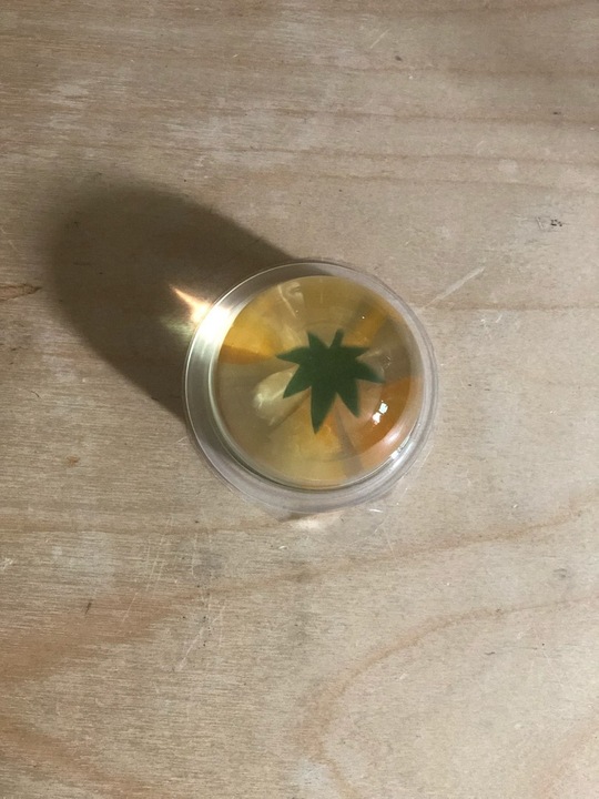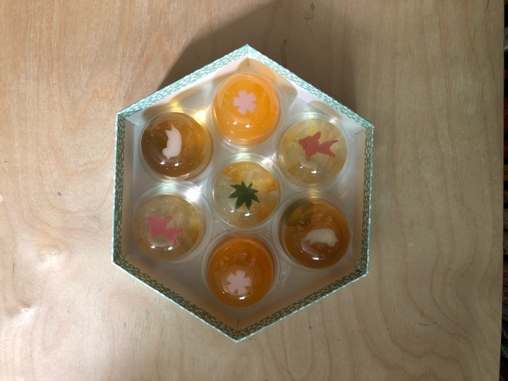 서울 가이드 답례로 젤리를 받았다. 3개는 귤껍질 같은 것이 들어있고 2개는 매실, 2개는 말린 살구가 들어있다. 비닐을 따면 물이 조금 흐를 수 있다. 젤리는 혀로 무너뜨릴 수 있을 만큼 부드럽다.