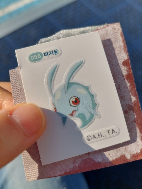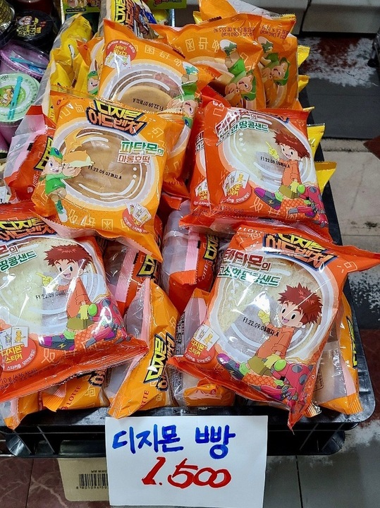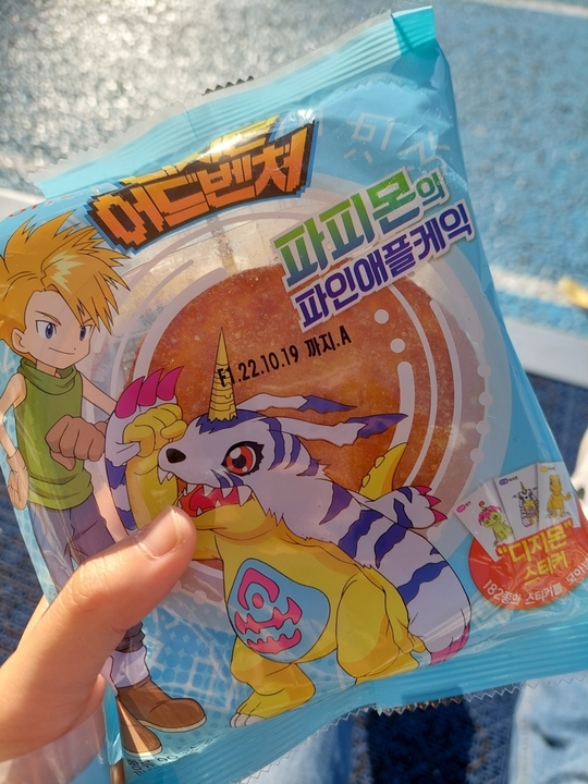 이런 걸 척척 사는 어른으로 자라 버렸지 뭐람... 소감은 보름달 빵에 롯데샌드 파인애플 크림을 바른 맛 ← 정확히 이겁니다. 롯데... 롯데샌드 크림을 재활용했군 ㅋㅋ 띠부띠부씰은 장렬히 실패했어요. 친구가 저 디지몬 콧물 닮았다고 놀렸어요 😂