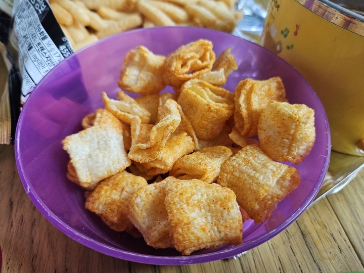 라면스프맛? 떡볶이맛? 스윗칠리맛? 뭔가 그런 한국인에게 은근 익숙한 매콤한 맛이 납니다ㅋ.ㅋ 기대보단 그냥 그랬던 것 같은데 또 꼬북칩이 맛있다 보니 한 번 더 사먹을 것 같기도 하고요ㅋㅋ 어쨌든 돈 아깝지는 않은 맛이었습니다~!