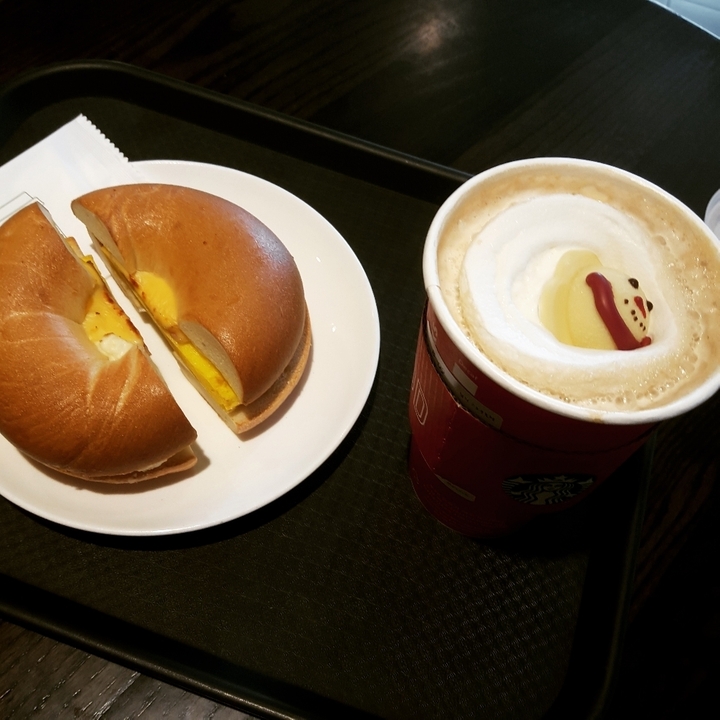 야채가 먹고싶었지만 딱히 구미가 당기는 샌디치가 없어서 먹었다... 가볍지않지만 가벼운 기분을 내고싶을때 먹는 베이글.... 베이컨이 등장할때 기분이 넘나 조크든요X) 번외로 돌체라떼는 시럽줄이고 샷추가했는데 역시 맛있고 배가아프다 ;p